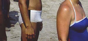 Jesus Hernandez walked me under the boardwalk and asked me if I liked jocks. I said I liked all boys, whether they were athletic-minded or not. He kinda looked at me and said no, I mean a jock strap. I was real embarrassed because I didn't know what he meant. He pulled down his swim trunks and he had on this mesh thing with a strap around his waist. I guess I must have blushed because he looked down and noticed that one of his testa.. tis... balls was outside the mesh because he pulled the thing down and rearranged his you-know-what inside. He had a real big you-know-what with lots of thick black curly hair around it. I guess it must have been hot out because I felt real warm down there -- under the boardwalk, I mean -- and I said we'd better go back. he wasn't very happy but he did walk me back to my blanket and said he'd get back to me later, but he never came back. Why do the boys always do that to me?