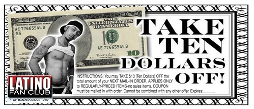 CLICK on our 'STORE' and SELECT DVD titles for your next order. Fill out the form with all information as you normally would and submit electronically through the website, and THEN email us at latinofans@aol.com and tell us you ordered from our webstore and include the confirmation number you were given when you ordered. We will automatically deduct $10 from your order.